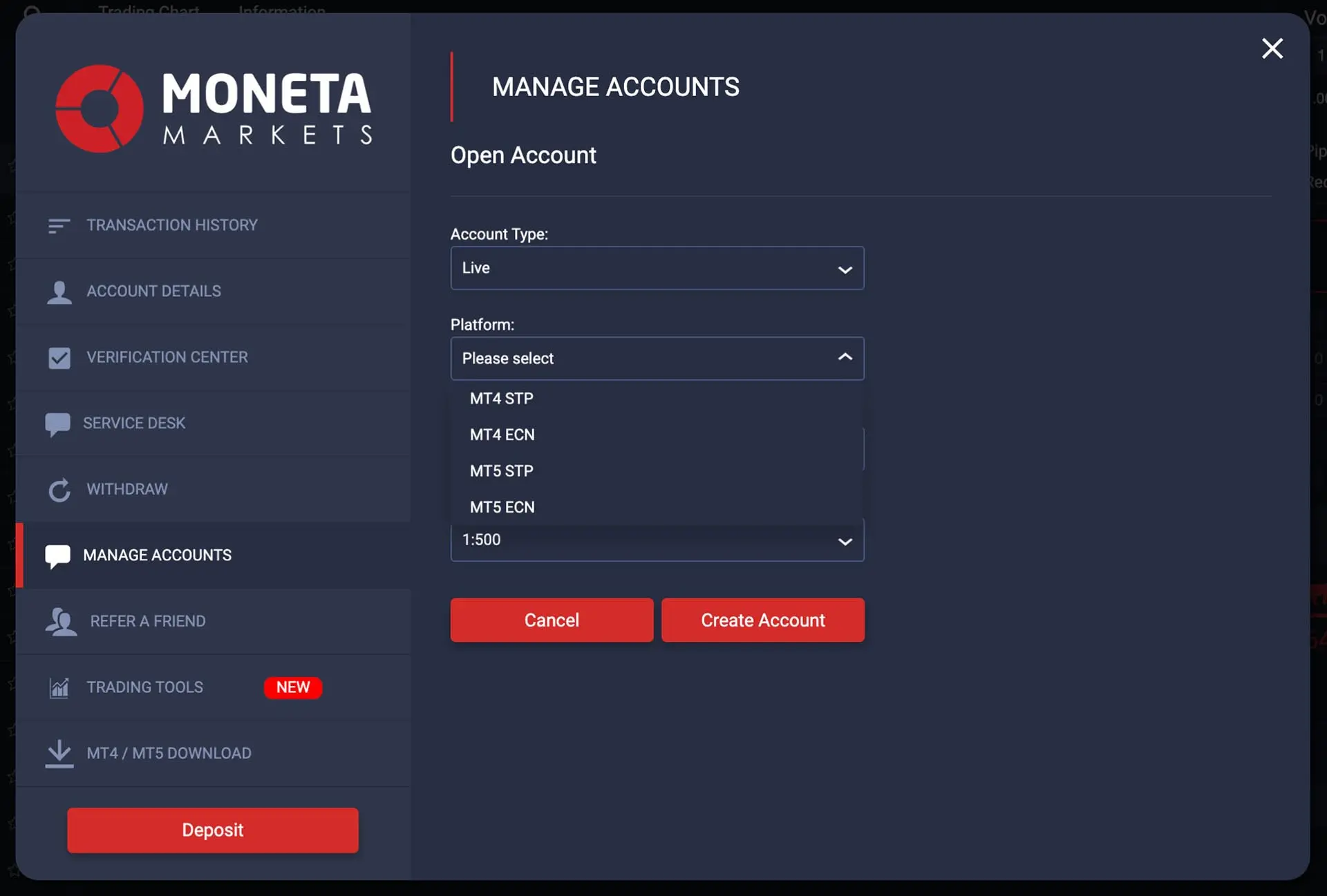 If you are an existing client and wish to create an additional account, log in to the Client Portal, select "Accounts", and choose ‘Demo’ or 'Live' – ‘Open an Account’.
